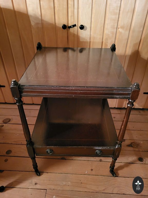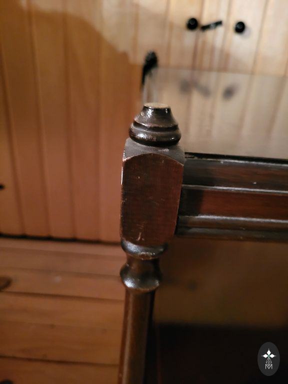 Medinis kėdė su dekoratyvinėmis priekinėmis kojomis ir atlošu. Be defektų. Sėdynė yra nuimama, todėl galima aptraukti bet kokiu jums patinkančiu audiniu. Galimas tik 1 vnt.