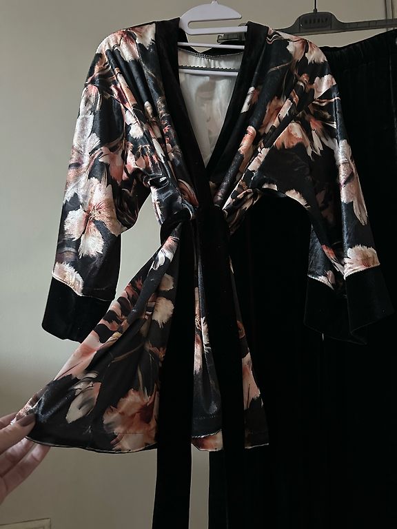 Bright velvet pajamas - top, shorts or long pants, satin robe