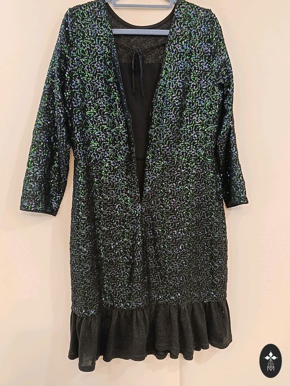 Stilīga, fliteru kleitiņa ar bārkstīm. 42-44 izmērs.