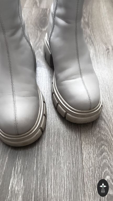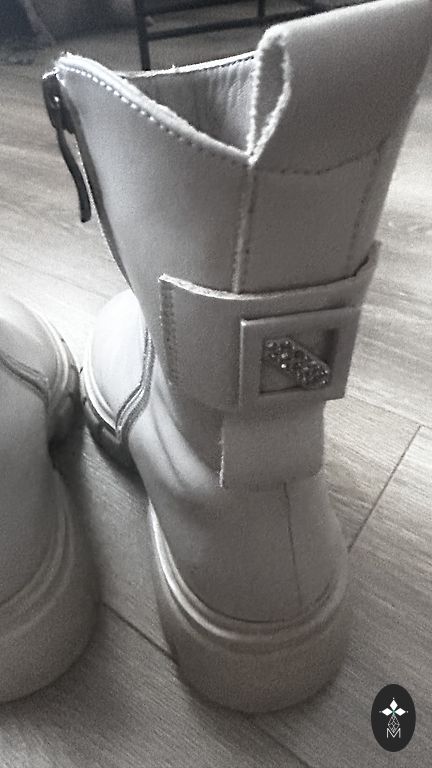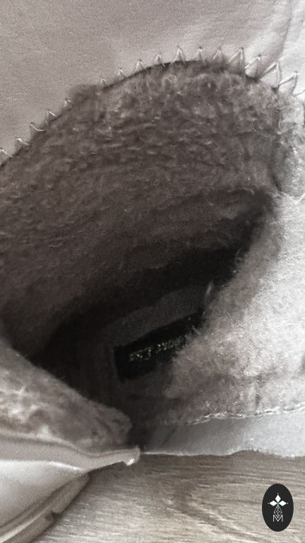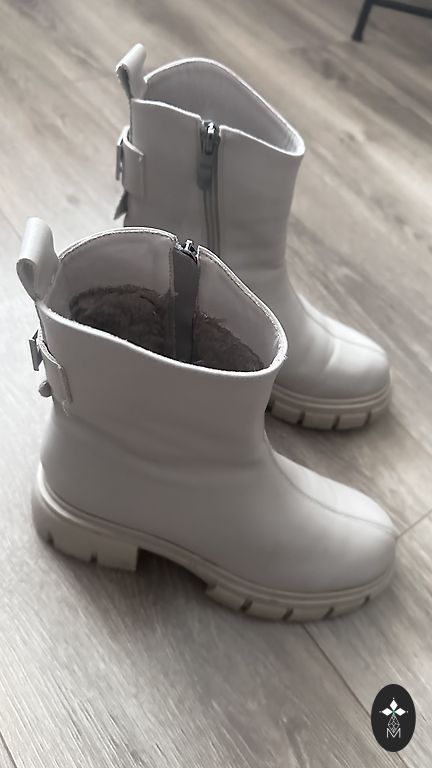 Natūralios odos žieminiai batai, iškloti natūralia avių vilna, šviesiai rudos spalvos, atsparūs vandeniui, su paslėptu 5 cm kulnu. Praktiškai nauji, be nusidėvėjimo požymių. Atitinka 40 dydį, tinkami vidutinio pločio ir siaurai pėdai.
