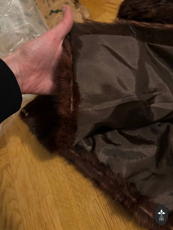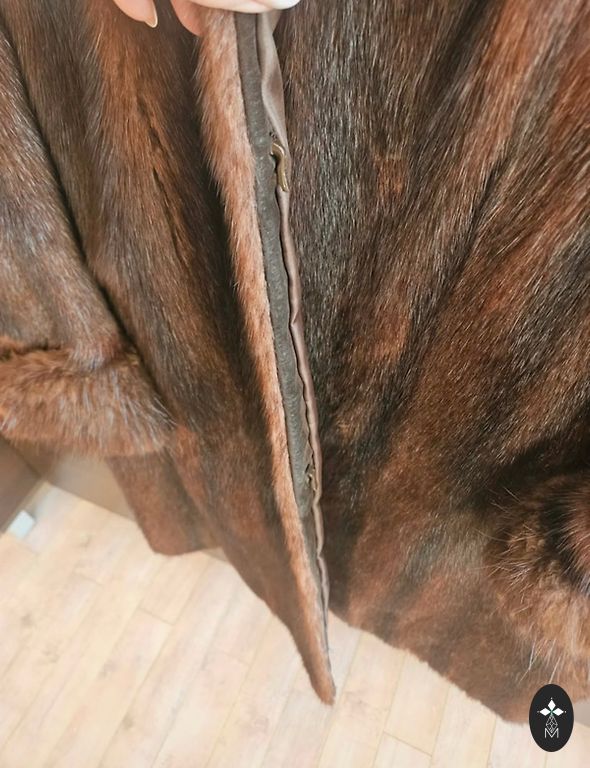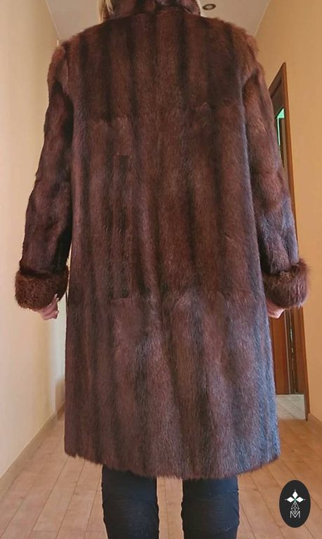 Naturaalsest naaritsanahast kasukas tükkidest. Suurepärane külma jaoks sel talvel. Kapuutsiga, vööga ja külgedel lõhikutega. On taskud. Vöökohtades, kus vöö on seotud, on karusnahk veidi kulunud, kuid kui õigesti siduda, siis peaaegu ei märka.