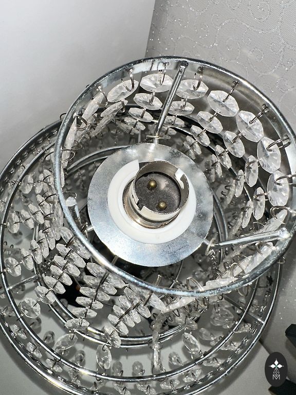 Naktinė lempa. Keramika. Su dviem stebuklingais paukščiais ir dideliu abažūru. Lempos vazės aukštis 45 cm + 5 cm vazės kaklas. Abažūro platus diametras viršuje 30 cm, apačioje 60 cm, aukštis 30 cm. Abažūras turi defektų - įdubimas ir kampelyje įtrūkimas, bet nėra pastebimi. Vaza neturi defektų. Su vienu cokolu. Savarankiškas išvežimas.
