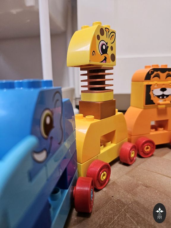 Lėktuve yra garsas, atsidaro langas. Raudona gale, paspaudus pakyla aukščiau. Sulūžusios kopėčios. Policijos automobilis turi garsą, reikia pakeisti baterijas, vos girdisi. Dinozaurų mašina turi garsą ir šviesą, bet reikia pakeisti baterijas. Viduje kažkas skamba, nežinau, ar kas nors sulūžęs ar ne. Atidaromi šoniniai langai, galima įdėti mažus automobilius. Vidutinė mašina pakyla su garsu ir šviesa, sukasi ir važiuoja.