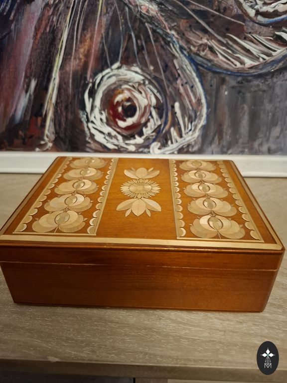 Didelė medinė dėžutė. Dydis 31*27*10 cm. Galima naudoti arbatos kolekcijai arba kitiems smulkiems daiktams namuose! Be defektų.