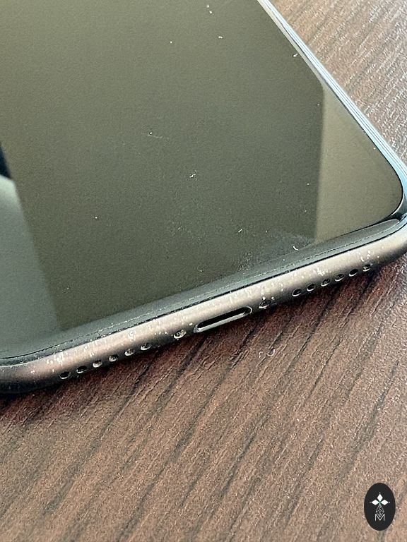 Есть незначительные царапины, которые не мешают работе. Установлено защитное стекло.