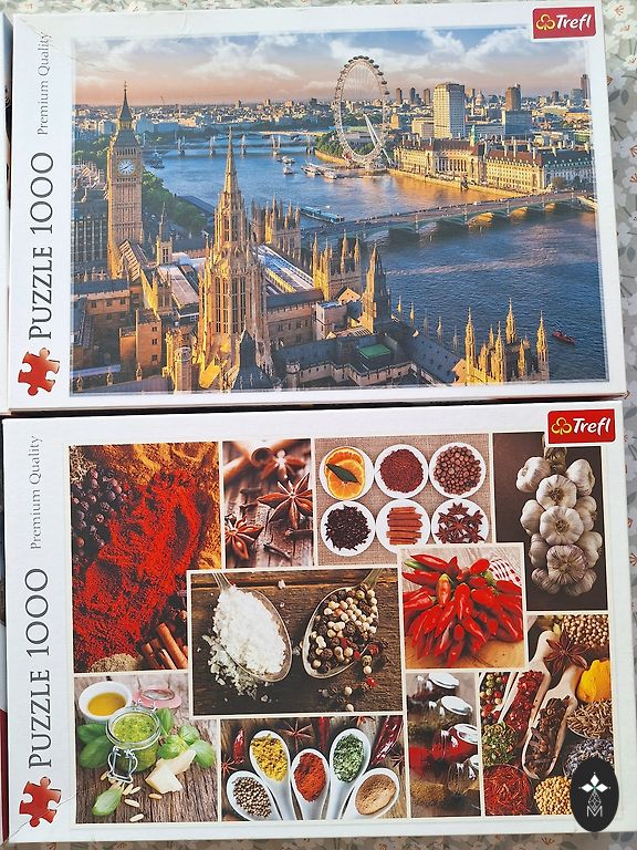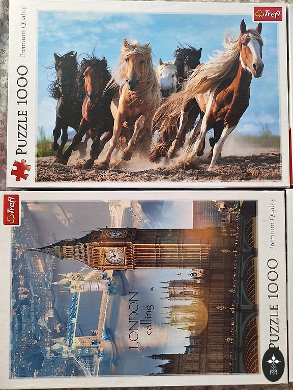 Puzzle with 100 pieces, the other one is not available. The box is worn, everything else is in good condition.