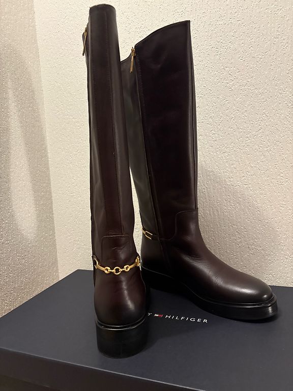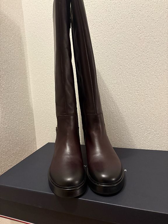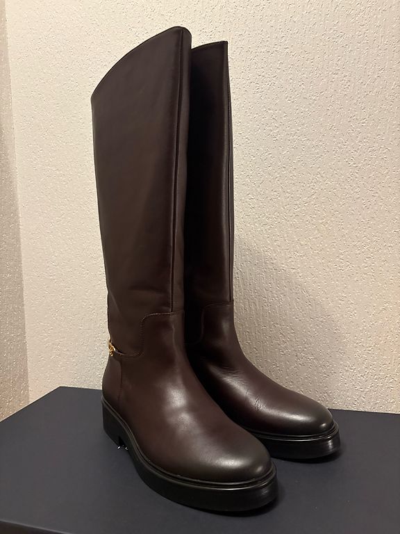 Gari ādas zābaki, sānos rāvējslēdzējs, kas ļauj paplašināt stulmu, ja nepieciešams.