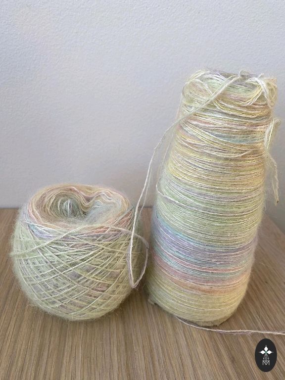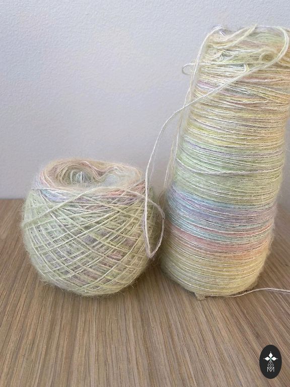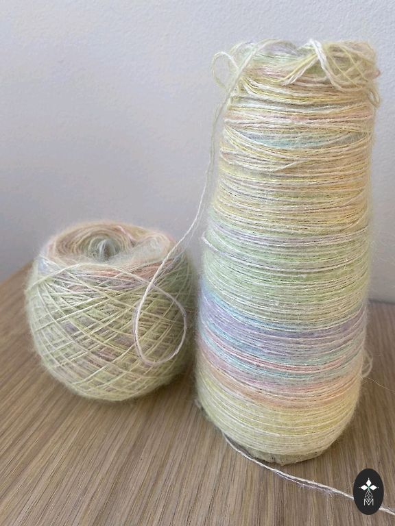Väga kvaliteetne Itaalia lõng - 70% kid mohäär ja 30% meriino. 220m 100g kohta. Minu kudumismasina jaoks kahjuks liiga paks.