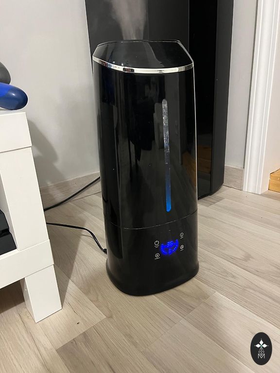 Eterinių aliejų difuzorius, pagamintas naudojant tylų ultragarso technologiją, kuri generuoja vandens vibracijas, nesukeldama šilumos. Šios vibracijos išskiria vandens lašelius su eteriniais aliejais, atskleidžiant jų natūralias savybes ir suteikiant malonų kvapą. Šis difuzorius sujungia muziką su kvapų skleidimu. Jis turi „Bluetooth“ garsiakalbį ir padeda atsipalaiduoti aplinkai.