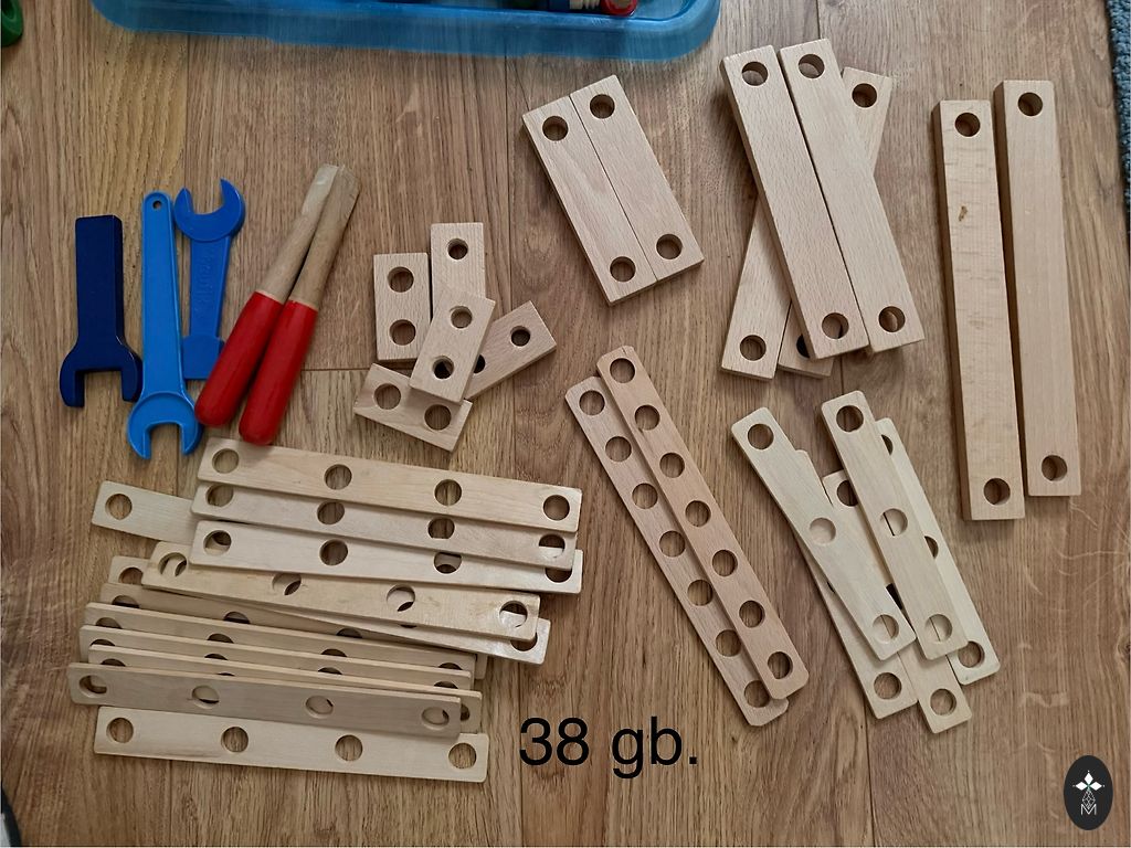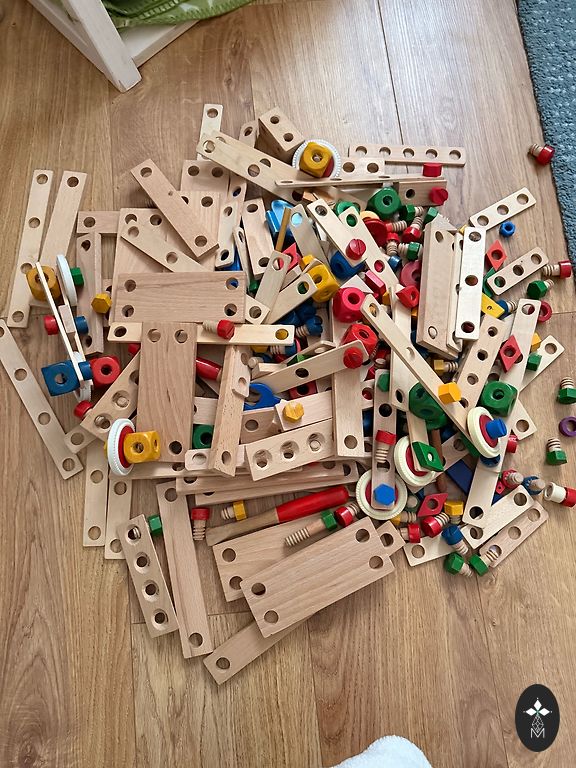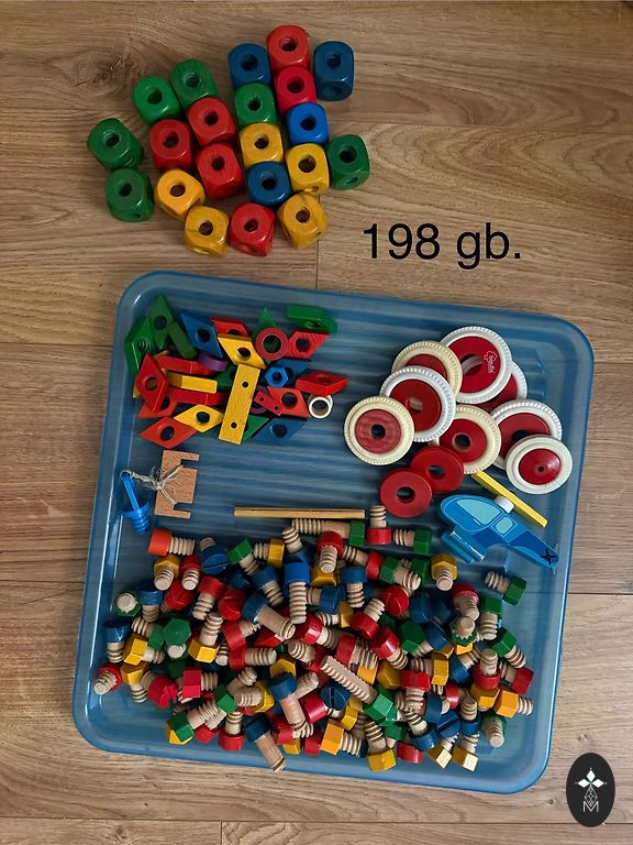 Koka skrūves un skrūvgriežņi, kluči un citas daļas - ļoti attīstoša un ilgi nodarbinoša rotaļlieta.