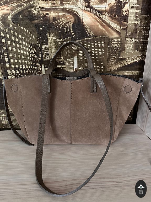 Сумка из замши AGL. Дорогой бренд, в хорошем состоянии, с несколькими небольшими царапинами. Цвет ближе к шоколадному. Очень вместительная, будет радовать долгое время.