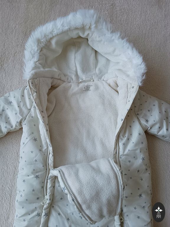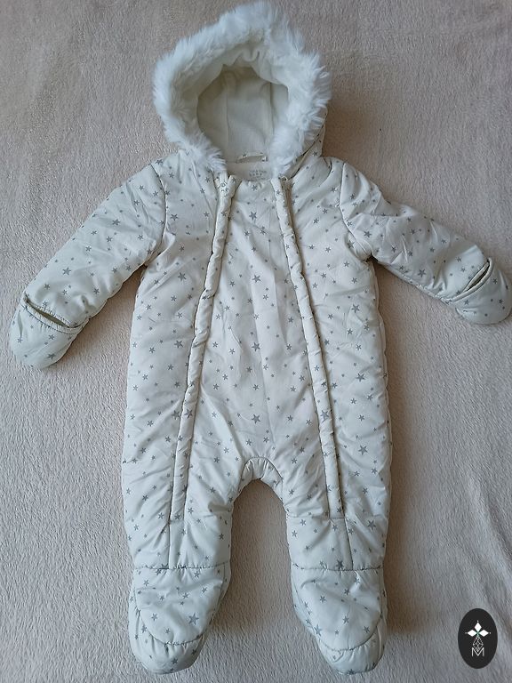 Valge kombinesoon, sobib nii poistele kui tüdrukutele. Käed on suletavad. Väga mugav kasutada hällis, samuti avanevad jalad (et panna turvatooli).