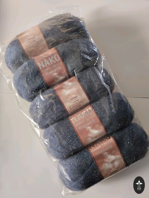 Ilus taevasinine lõng. Ostetud coolwool.lv-st, toodetud Itaalias. Täpset koostist ei mäleta, puuvill ja siid. Väga pehme. 10 tokki, 500 g. Asub Grīziņkalnā.