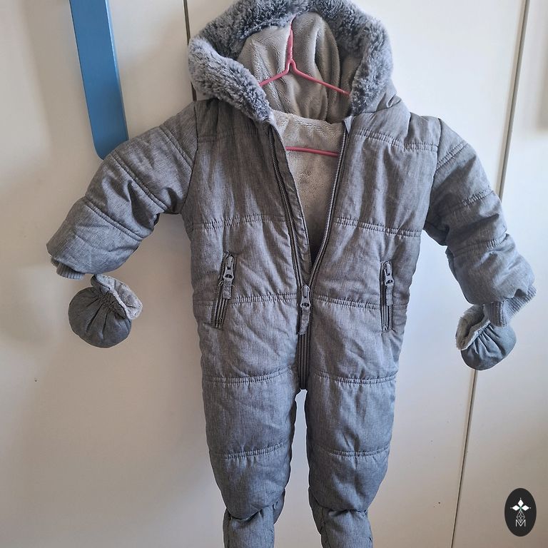 Winter snowsuit-bag. Foldable hands. Lining - soft cotton. Convenient to use in a car seat as well (there are appropriate holes for straps).