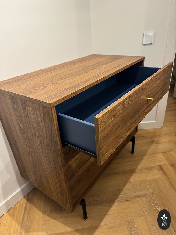 ✅ Stable metal legs Slight, almost unnoticeable cosmetic defect on the bottom drawer - not visible in everyday use, only noticeable if you look closely (see picture). We discovered this much later after assembly.