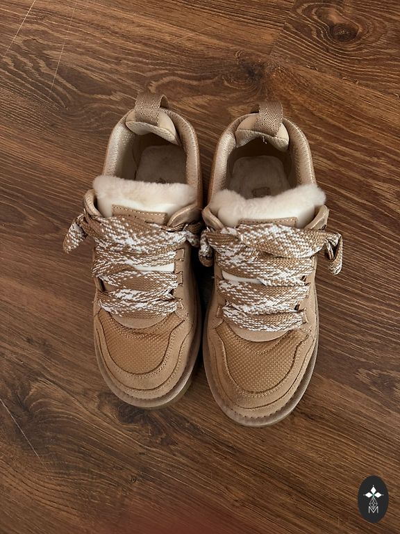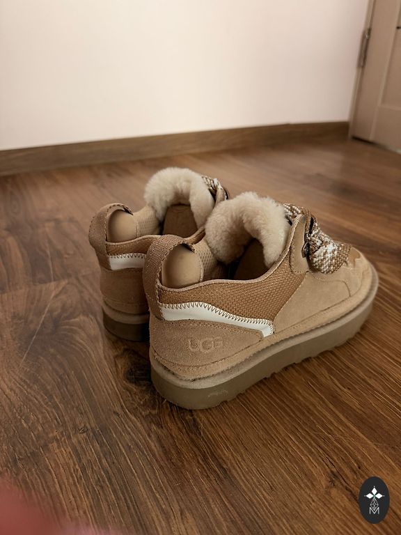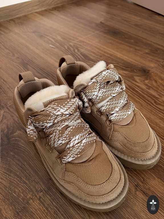Suede with sheepskin, warm and comfortable.