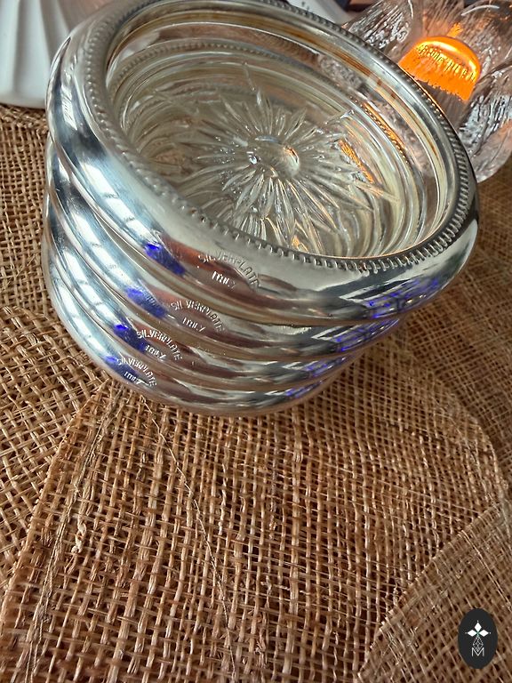 Античная хрустальная посуда с посеребренной хлебной корзиной или подносом. Это коллекционный предмет. Вероятно, из конца 19-го века или начала 20-го века.