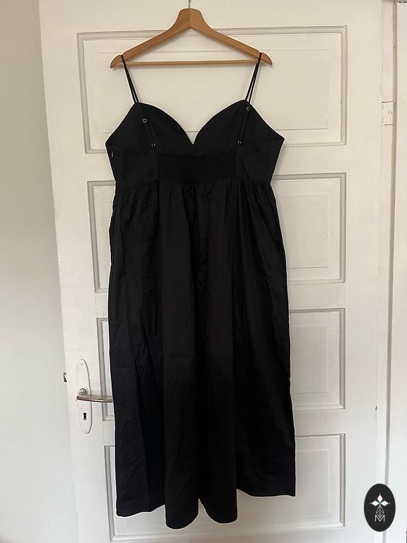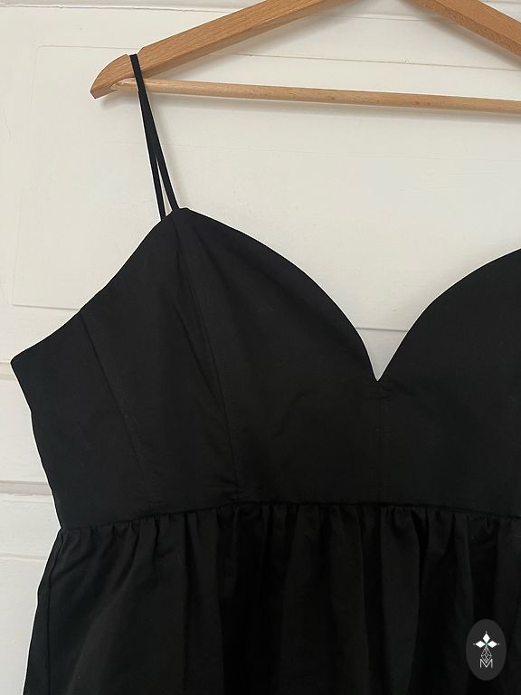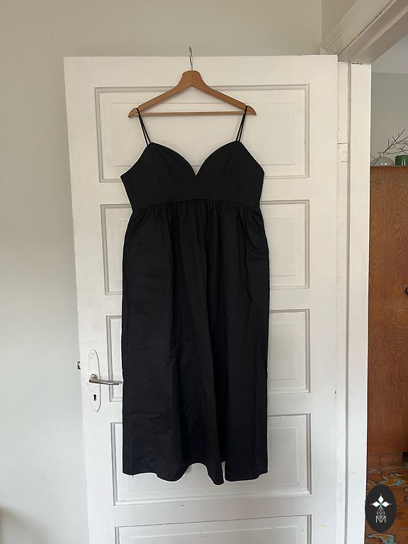 Juodas tiulio kostiumas, kuris iškart patraukia akį savo dramatišku tūriu ir įspūdingu ilgiu. Jis yra labai ilgas — net ir 1,80 m aukštis pasiekia žemę — ir išskirtinai pūstas, formuojantis stiprų, teatrališką siluetą. Kostiumas puikiai tinka dėvėti virš suknelės ar kito drabužio, ypatingiems renginiams ir fotosesijoms, kur reikalingas ryškus ir nepamirštamas vizualinis akcentas.