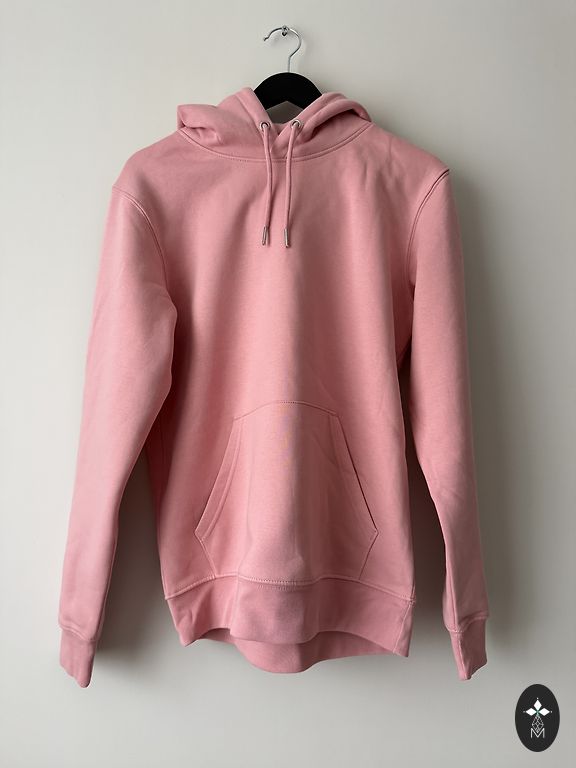 Rožinis megztinis su sutraukiamu gobtuvu.