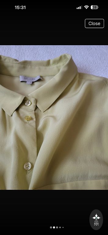 Izmērs M, bet ir lielāks — atbilst tuvāk izmēram L. Var valkāt kā īsto izmēru L vai kā lielizmēra apģērbu izmēram M. Lieliskā kā jaunā stāvoklī.