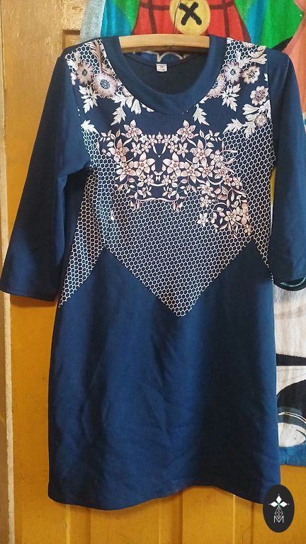 Zilā- Smukcepures, L izmērs. Ar kabatām, mežģīnēm un briedīti.