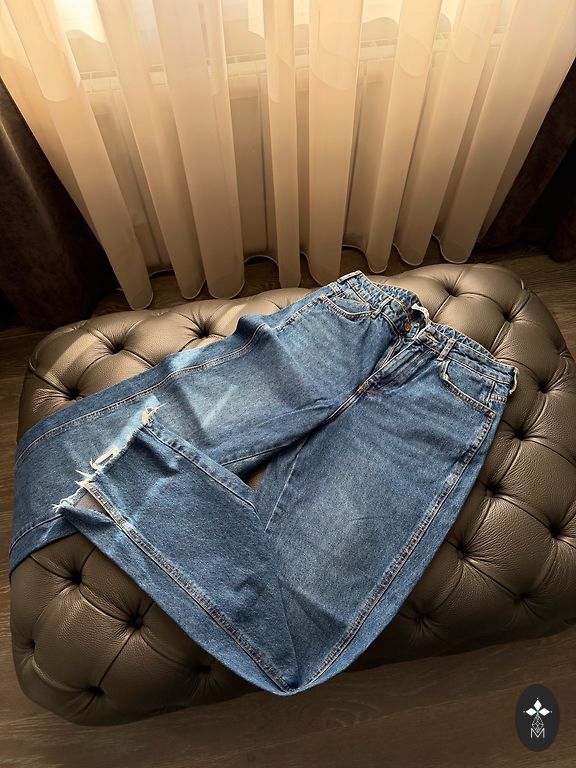 Mazlietoti augstās jostas vietas džinsi ar platiem galiem. 42 izmērs!!!