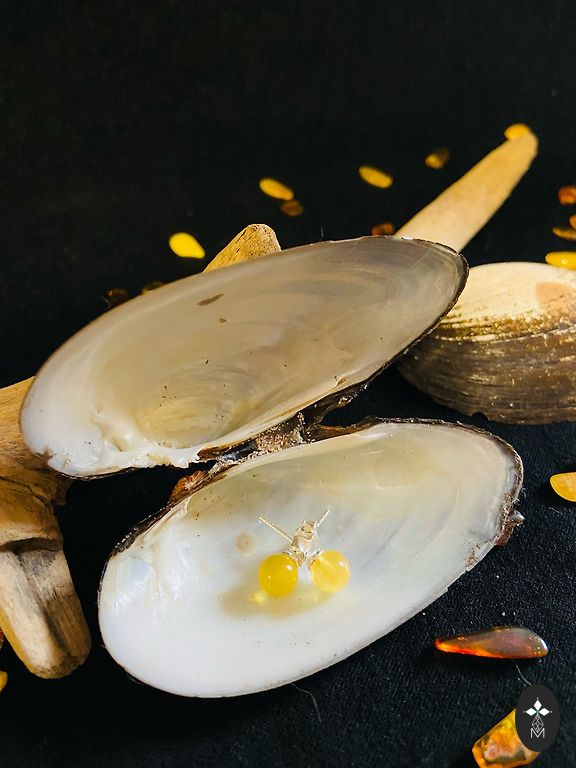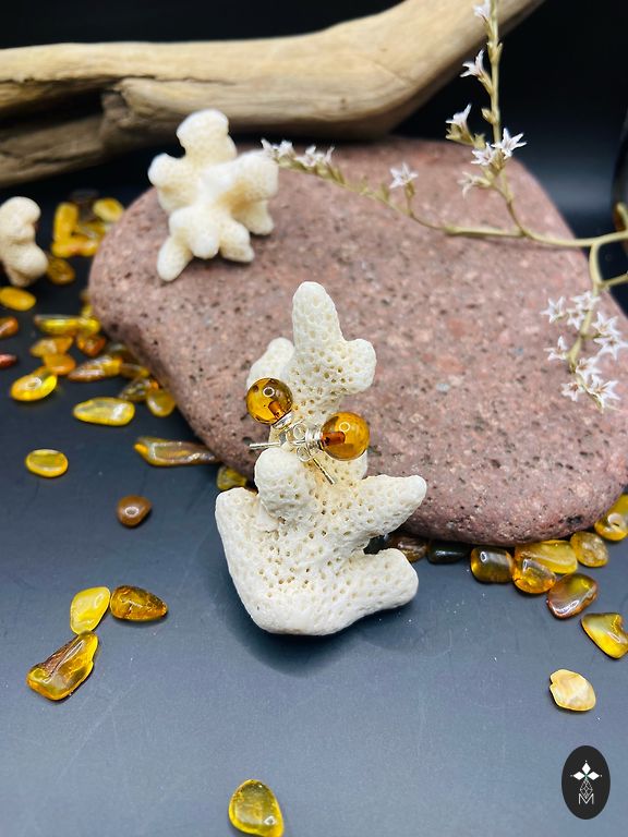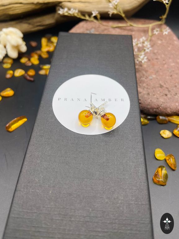 Серьги из янтаря с плоской задней частью.