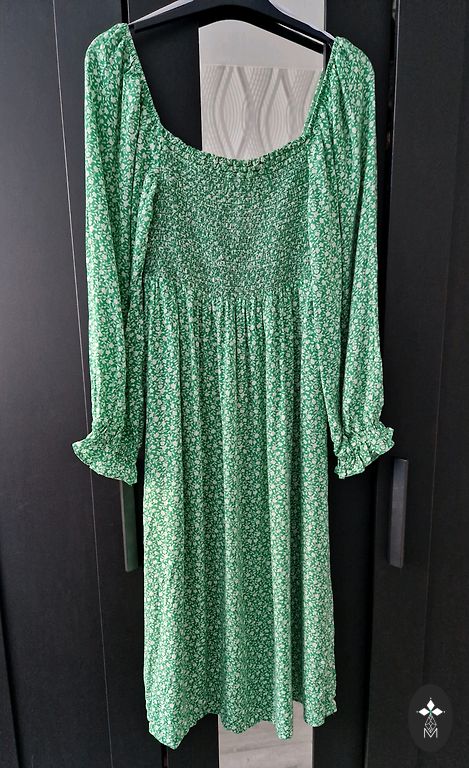 Žalia suknelė su taškeliais