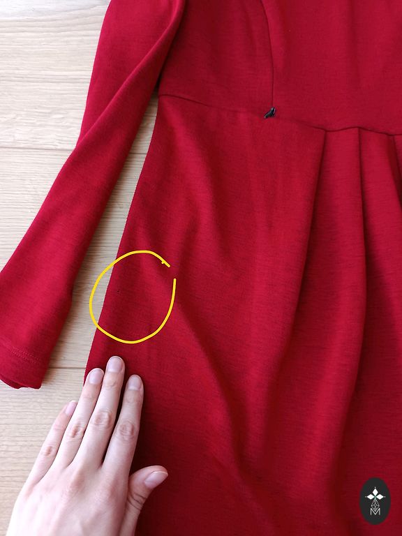*Bright pink dress, lace.