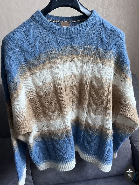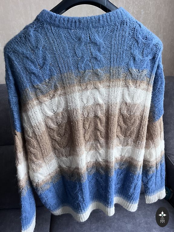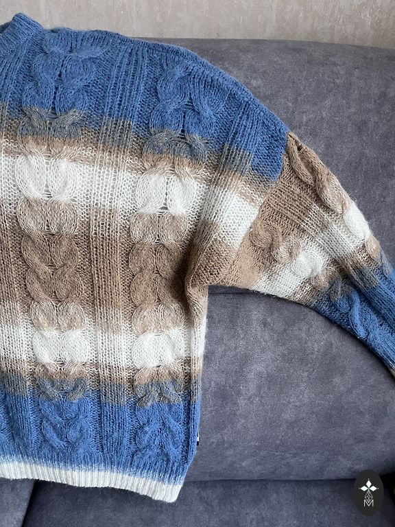 Megztinio rankovės yra 3/4, krūtinės apimtis 59 cm, ilgis 68 cm.
