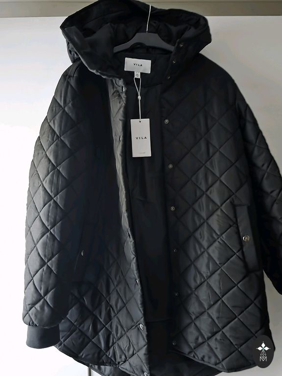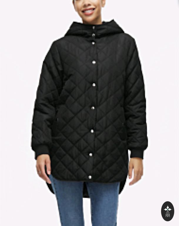 Augstā apkakle.Viduklis un jakas apakša ar savelkamu auklu.