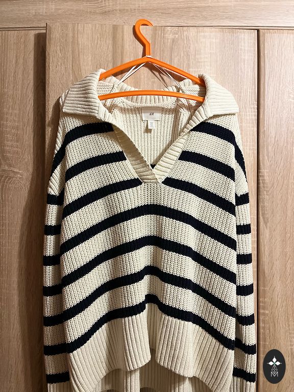 Этот свитер предназначен для высоких женщин или как платье для невысоких женщин. На бирке указан размер XS, но я высокого роста (размер L), и он мне идеально подходит. Ткань состоит из 41% вискозы. Манжеты очень интересные. В ткань вплетены серебряные нити. Он очень, очень теплый!