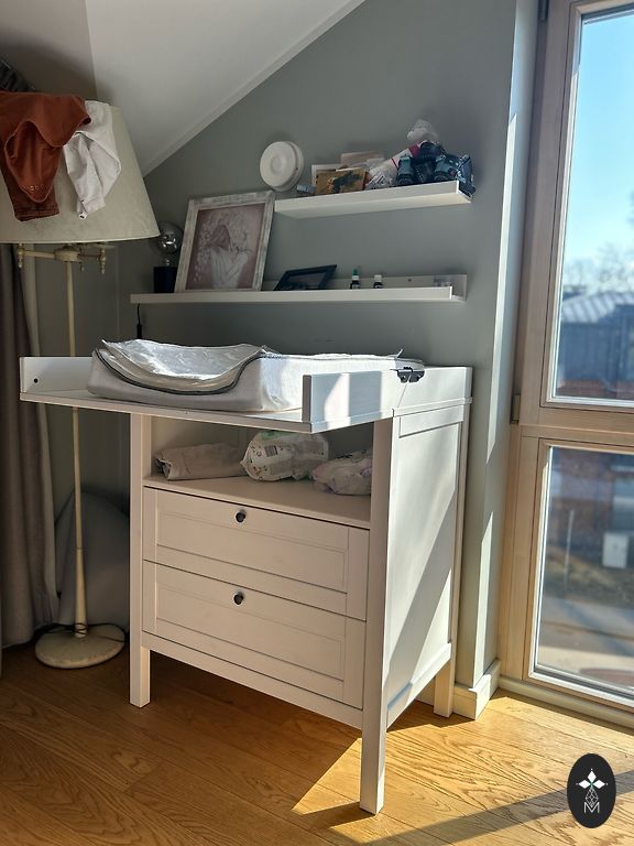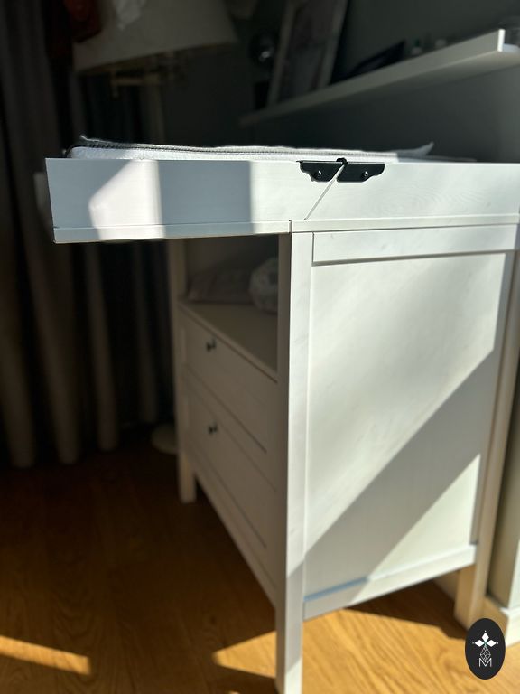 Продаю белый комод IKEA MYLLRA для пеленания вместе с пеленальной поверхностью, матрасиком и 2 съемными тканевыми чехлами.