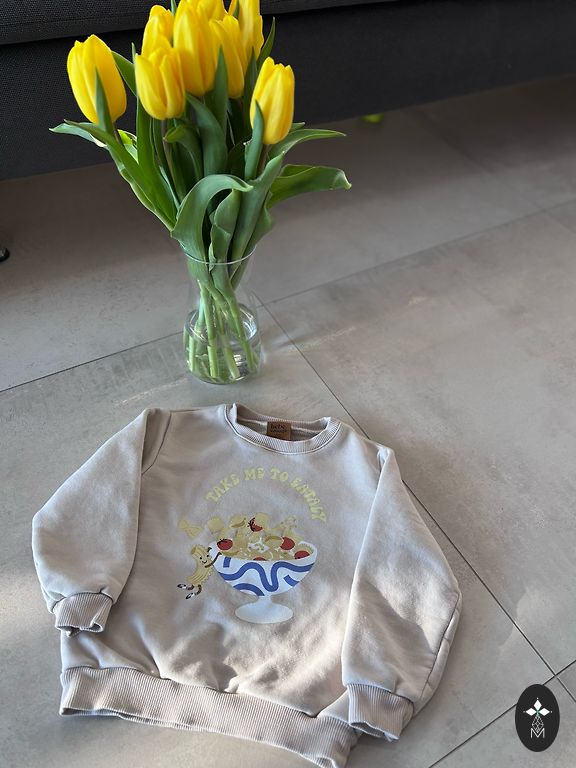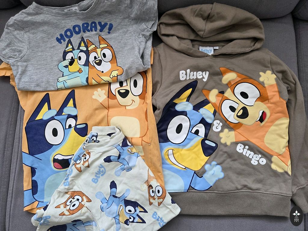 Dinozaurų megztiniui nurodytas 116 dydis, tačiau geriau tinka 104.