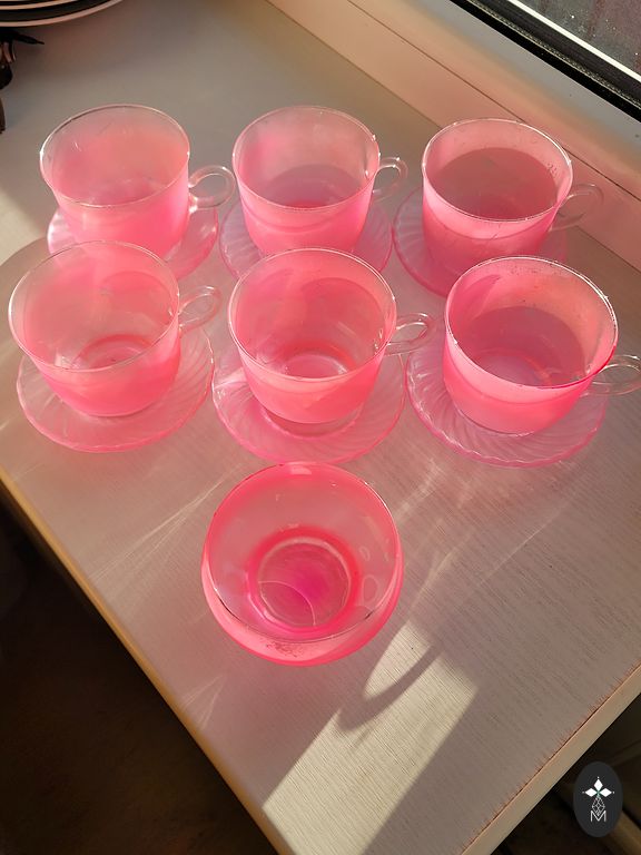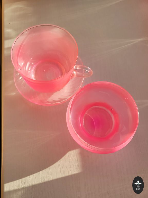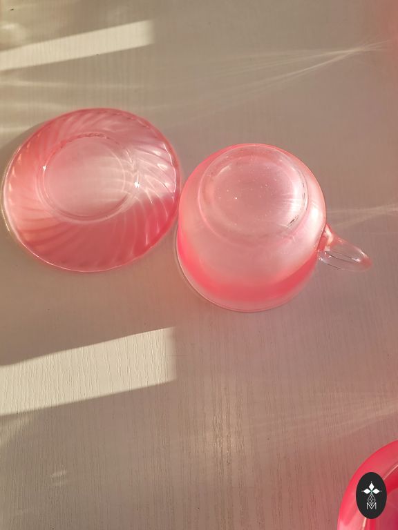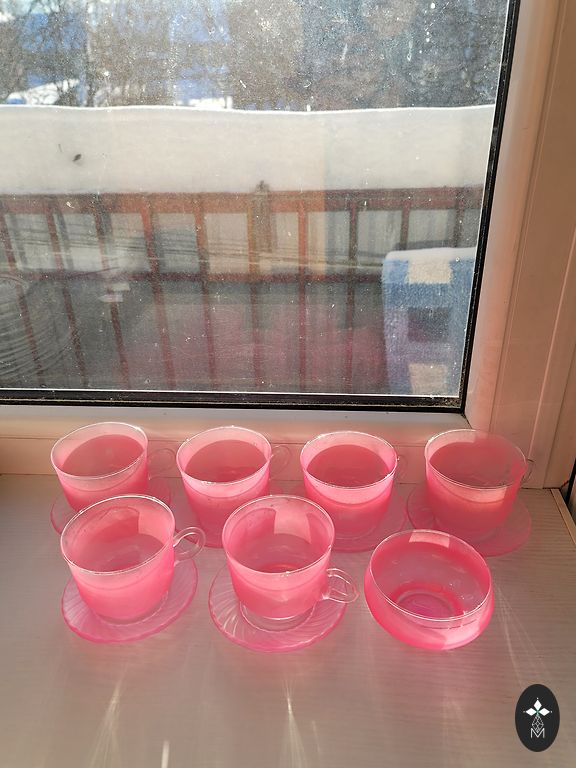 2 punast keraamilist duo ja üks must klaasi duo. Ilus kontrast ja küllastunud värvid. Mõeldud espresso kohvile, tassid on väikesed.