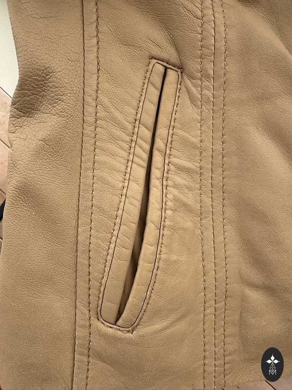 Aprašymas: • Natūrali oda • Spalva: tamsiai ruda / šokolado atspalvis • Klasikinis biker stilius, trumpesnis kirpimas • Pamušalas labai geros būklės • Užsegimas su užtrauktuku, funkcionalios kišenės • Pagaminta Indijoje