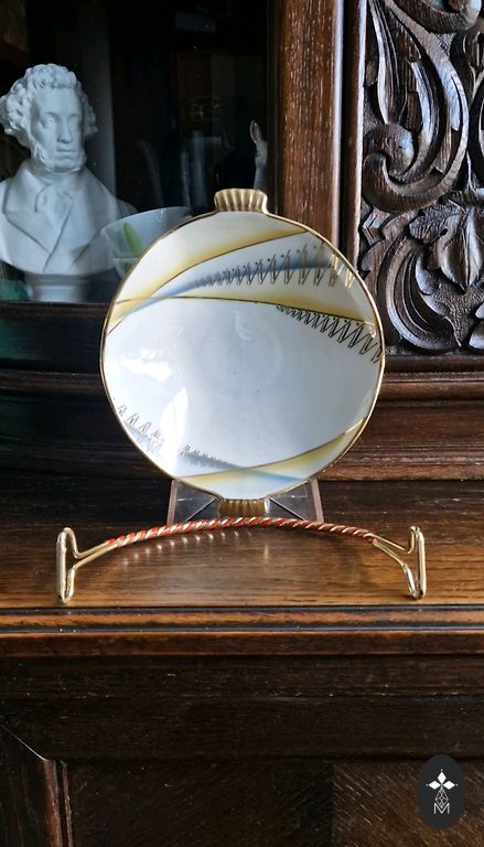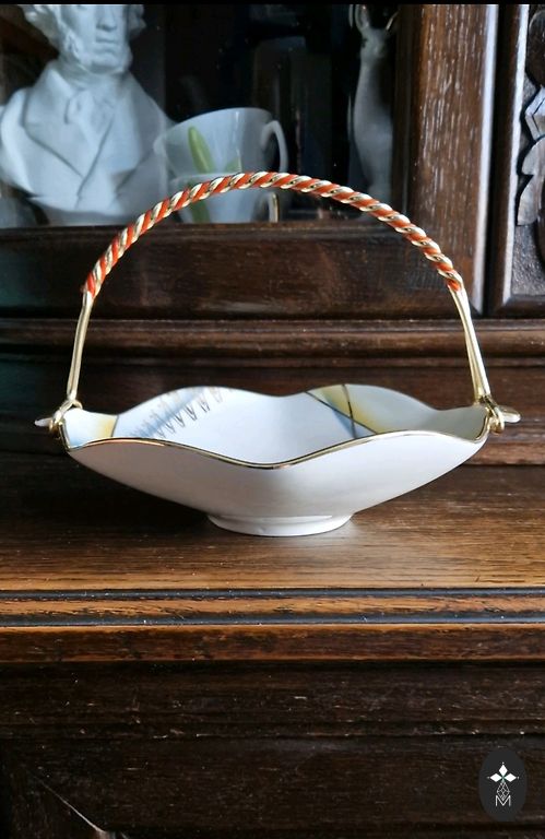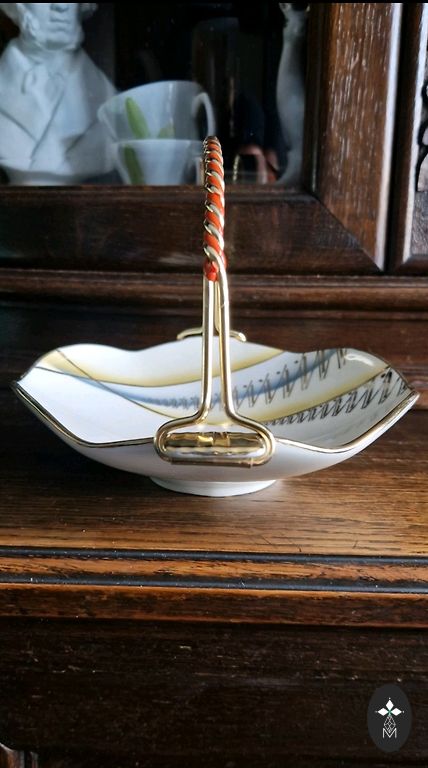 Ši elegantiška vaza puikiai išsilaikė iki šių dienų, idealiai tinka saldainių ir vaisių laikymui, tiks bet kuriame interjere ir taps puikiu papildymu Jūsų vintidžo indų kolekcijai.