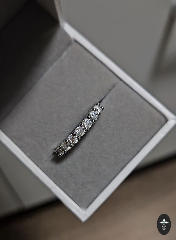 Peamine kivi 0.3 karaati Moissaniit, puhtus D, väike CZ (tsirkooniumoksiid) kivide rida.