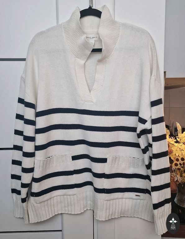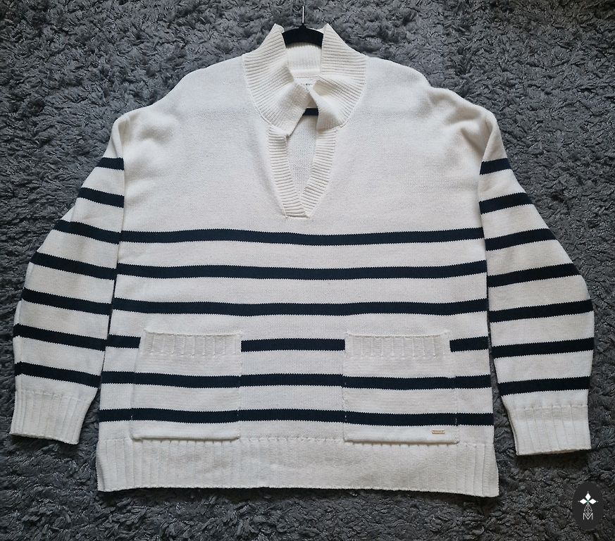 Šis megztinis yra labai geros būklės. Šias nuotraukas šiek tiek patobulinau su ChatGpt, kad tikrai matytųsi tikroji megztinio spalva.