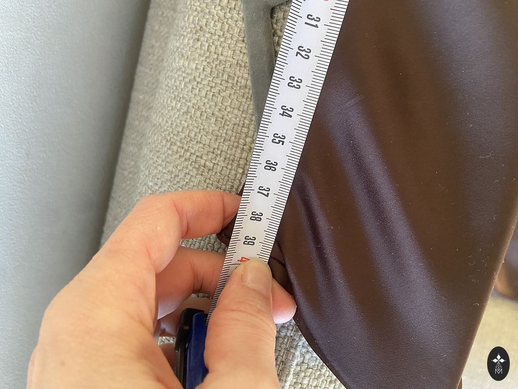 Müün kootud seelikuid, sidumisvõimalusega, taskutega ja lõhikuga tagaküljel. Pikkus 86cm, vööümbermõõt reguleeritav, umbes 80 kuni 96cm.