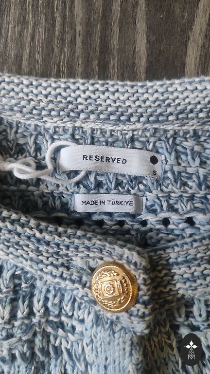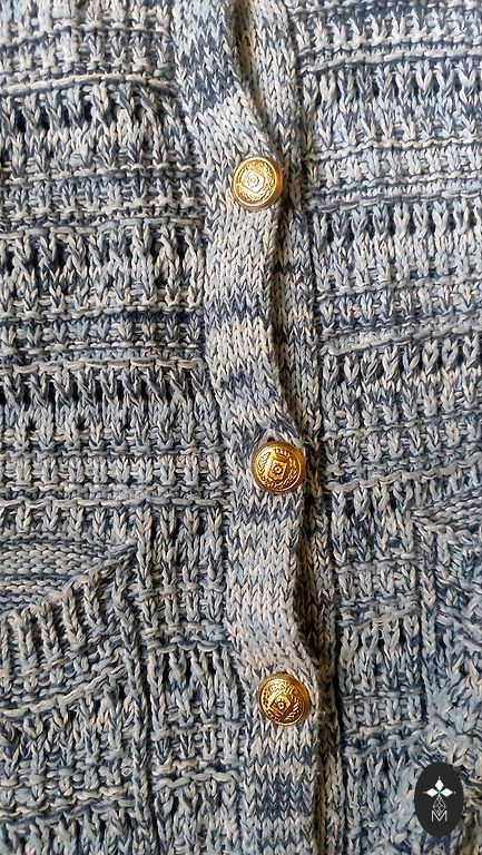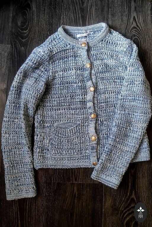 Džinsinis švarkas su plyšiais.