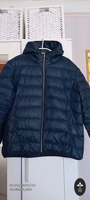 Ilgis 120 cm, krūtinė 112 cm, klubai 120 cm, rankovės 60 cm. Medžiaga šiek tiek blizgi.