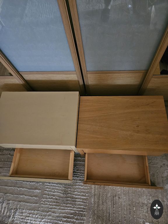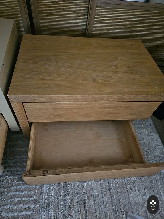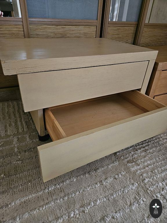 Gaumīgs naktsgaldiņš ar vienu atvilktni un plauktiņu.