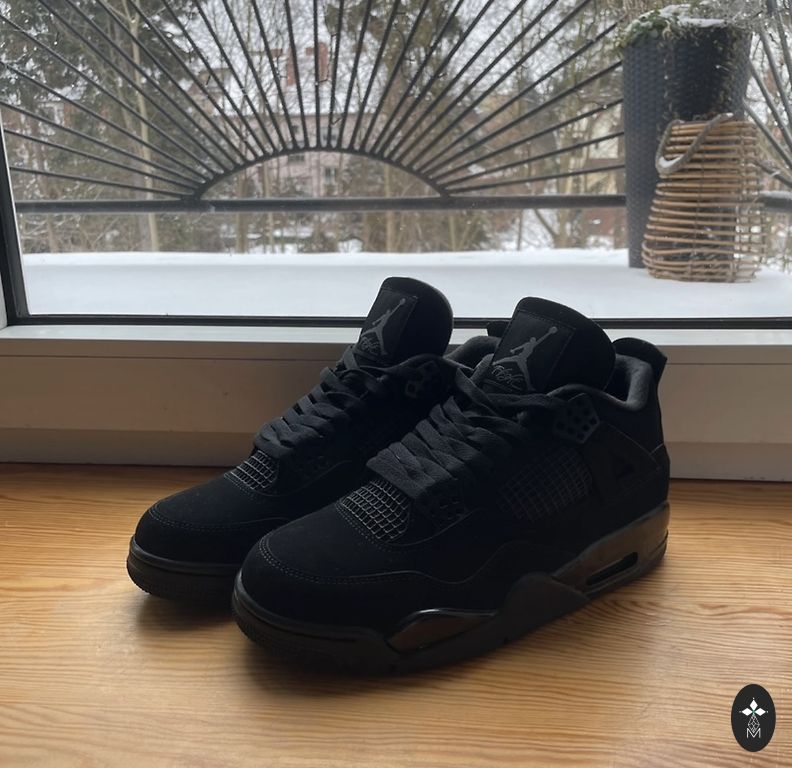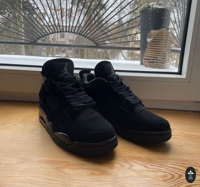 Jordan 4 Black Cats – elegants, pilnīgi melns AJ4 modelis, kas izceļas ar gludu un tīru dizainu. Stilīgs un viegli kombinējams sneakers, kas der gan ikdienai, gan īpašiem outfitiem.
