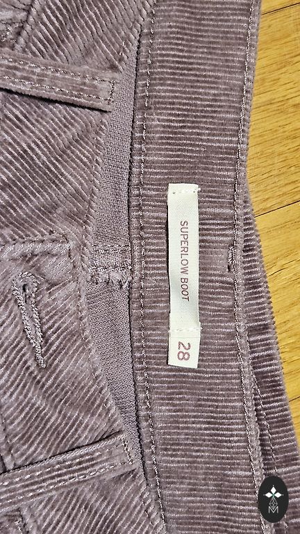 Džinsai yra šiek tiek dėvėti, skylė kairėje kelio dalyje, kelnių užsegimas su sagomis. Dydis S, juosmuo šiek tiek didesnis, todėl nusprendžiau parduoti.