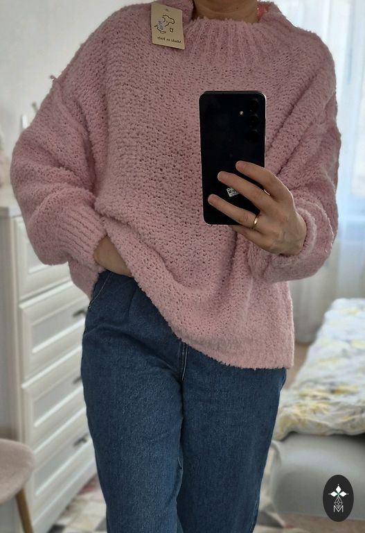 Šiltas medvilnės 70% trumpintas megztinis. Vienas dydis nuo S iki XL.