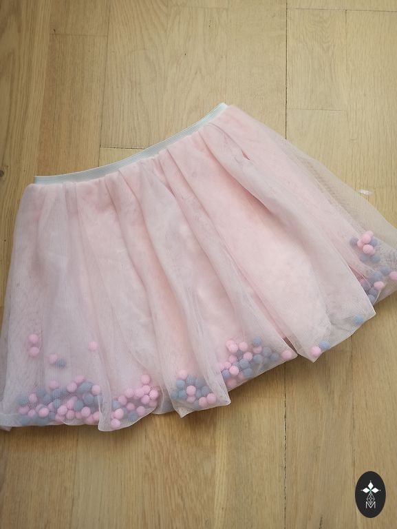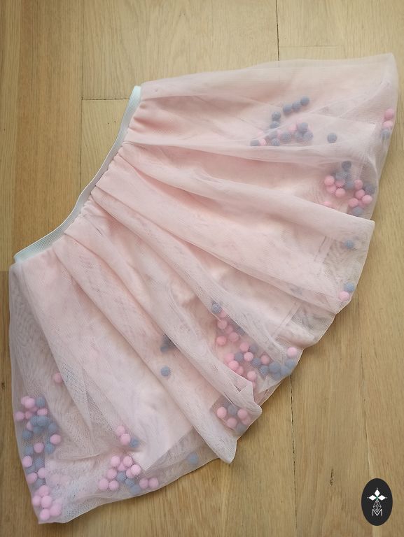 Kupli svārciņi ar volāniem un gumiju. Gaiši rozā. Ar spīdumiņiem (nedaudz). Garums 32 cm. Viduklī 25 cm.