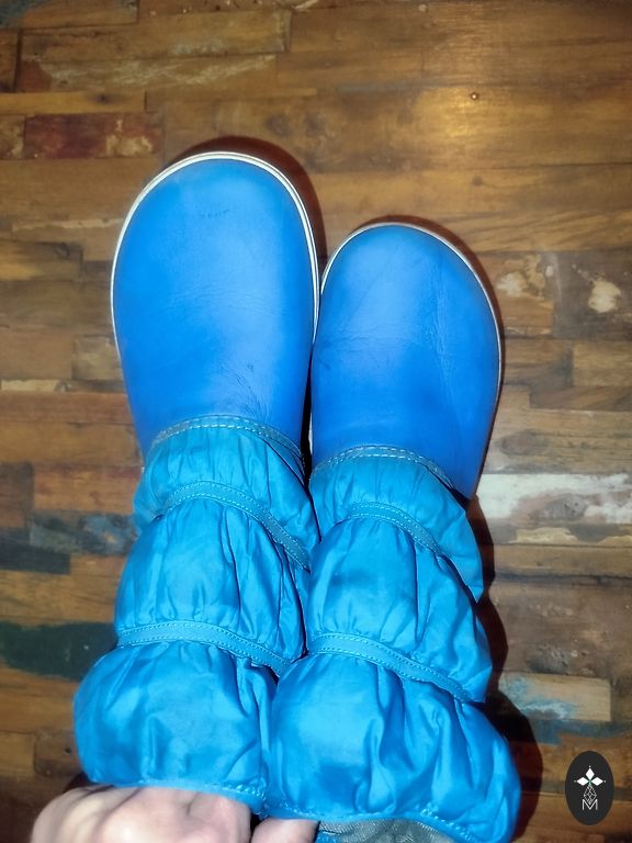 Neid tõmmatud, J3 suurus, internetis leiduvad tabelid ütlevad, et vastab suurusele 34-35. Värv sinine/lilla. Soojendust pole.