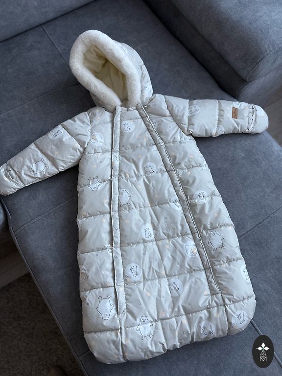 Starpsezonas lodger kombinezons, izmērs rakstīts 74, 6-12mēn, mums derēja līdz 11 mēnešiem, rociņas aizlokāmas