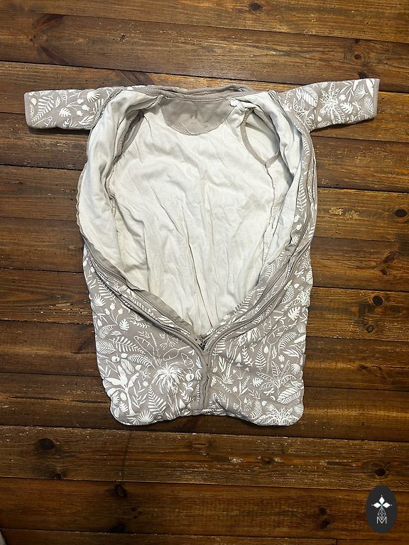Sleeping bag with zippers at both ends, warm and comfortable for 0-6 months intended.